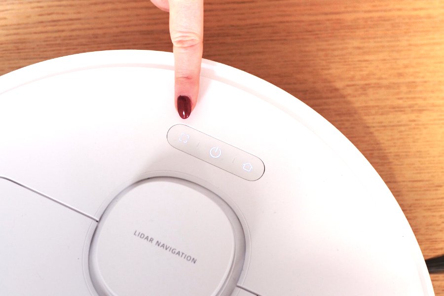 Le robot a 3 boutons sur son capot : un pour l’allumer, un autre pour lancer un nettoyage localisé, et le dernier pour le renvoyer vers sa station. Sous son capot, un quatrième bouton permet de le réinitialiser.