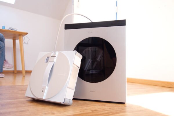 Le lavage des serpillères du robot s’effectue automatiquement lorsqu’il rentre à sa station. Celle-ci s’occupe aussi de leur séchage, ce qui évite les mauvaises odeurs.